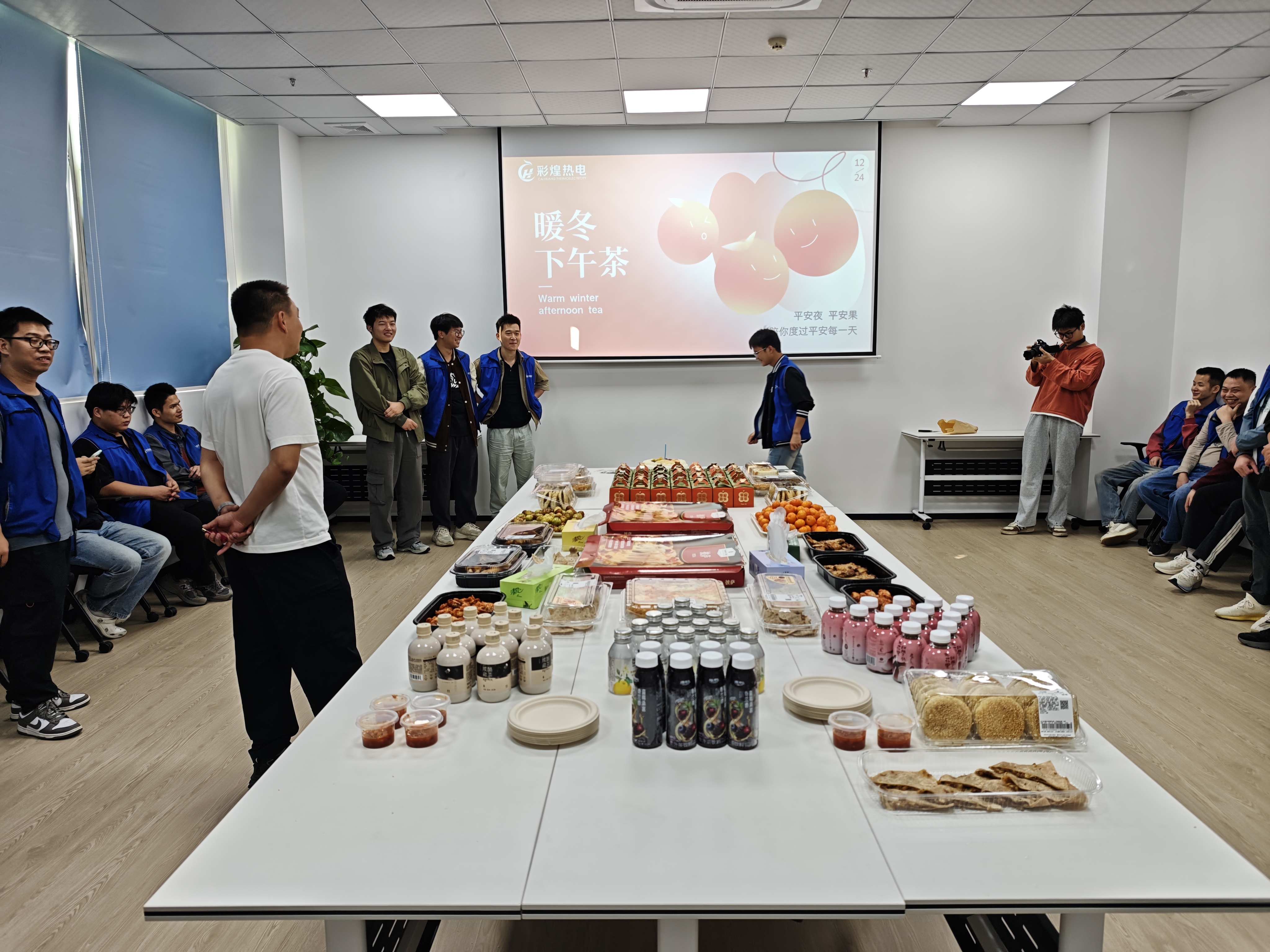 歲末將至,冬意漸濃,為感謝全體員工一年來的辛勤付出,營(yíng)造溫暖和諧的團(tuán)隊(duì)氛圍,彩煌熱電精心籌備了一場(chǎng)別開生面的年終暖冬下午茶活動(dòng)。本次活動(dòng)特別融入了十二月員工生日會(huì)環(huán)節(jié),四位壽星同事與大家歡聚一堂,在甜蜜與歡笑中感受公司的關(guān)懷與團(tuán)隊(duì)的溫情。巧合的是,溫馨的平安夜與冬日暖陽(yáng)的余韻交織,更讓這場(chǎng)聚會(huì)暖意融融,情誼加倍。